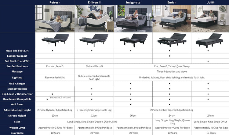 Discover better sleep with the Enrich Adjustable Base. Boasting cutting-edge technology that’s second to none, choose from a selection of preset programs that can even help reduce snoring for an undisturbed sleep. Enjoy the weightless feeling of Zero-G, which evenly distributes weight and promotes...- From $3,204.99