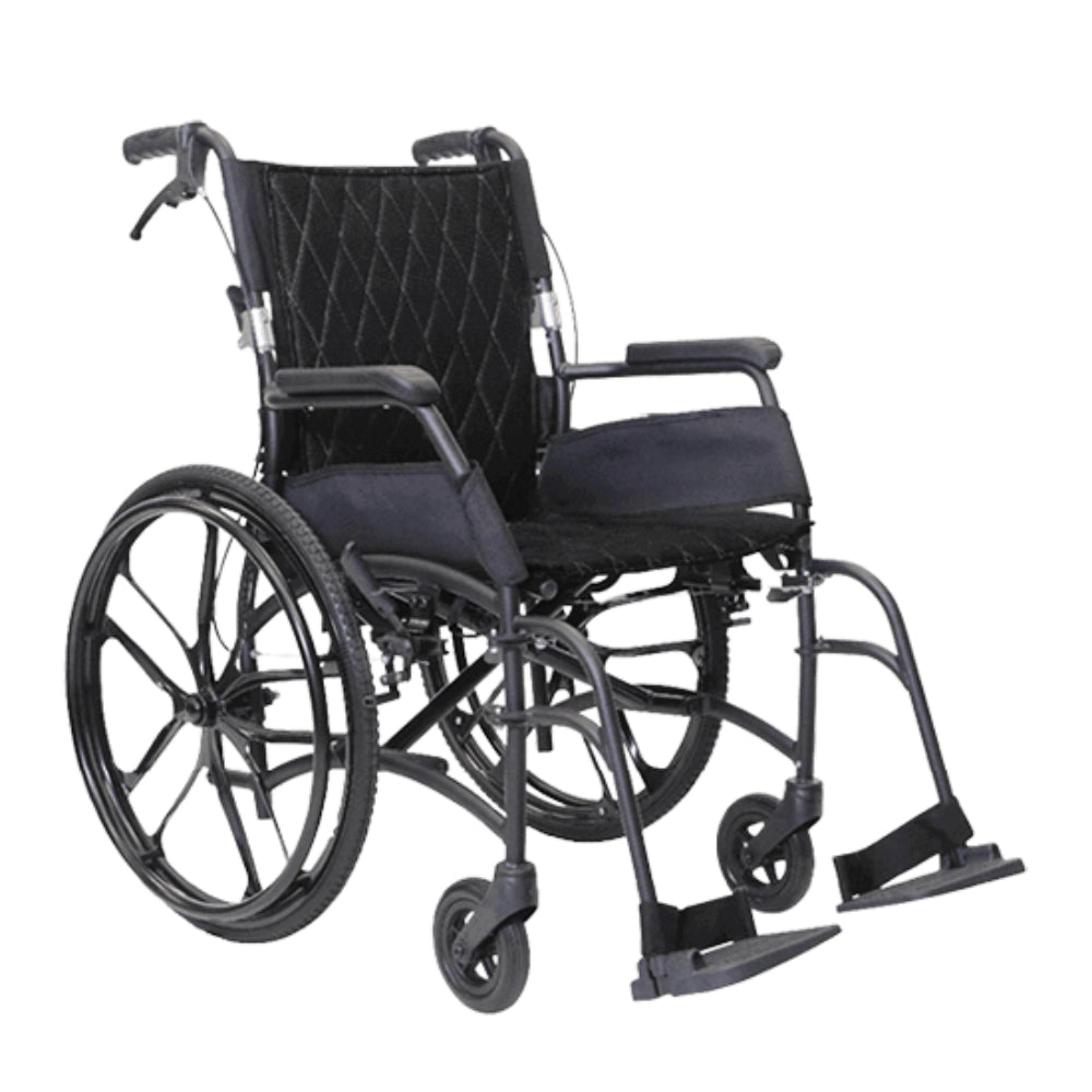 The Aspire VIDA X is an ultra-modern, super-lightweight transport wheelchair designed for mobility, convenience, comfort and style. The wheelchair’s ergonomic backrest and seat shape meticulously follow the user’s contours, providing maximum comfort and optimal postural support. With 22 inch sports mag wheels and eye-catching frame & upholstery detail, the VIDA X is a striking modern transport wheelchair solution.