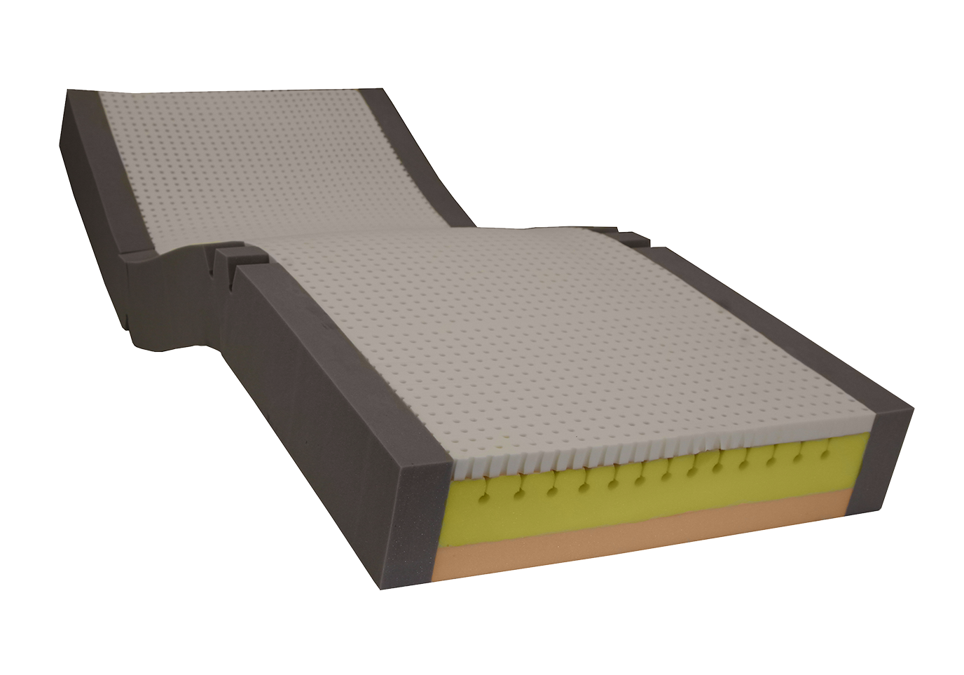 each cell has a 180° pivot point which increases lateral flexibility and lessens internal tension throughout the surface. Reducing tension also increases the longevity of the mattress.