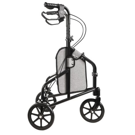 FOLDABLE DESIGN: Quickly collapsing for transporting in a vehicle or for convenient storage, the tri-rollator neatly folds in half. The compact rollator is also freestanding when folded for positioning beside a chair or sofa.