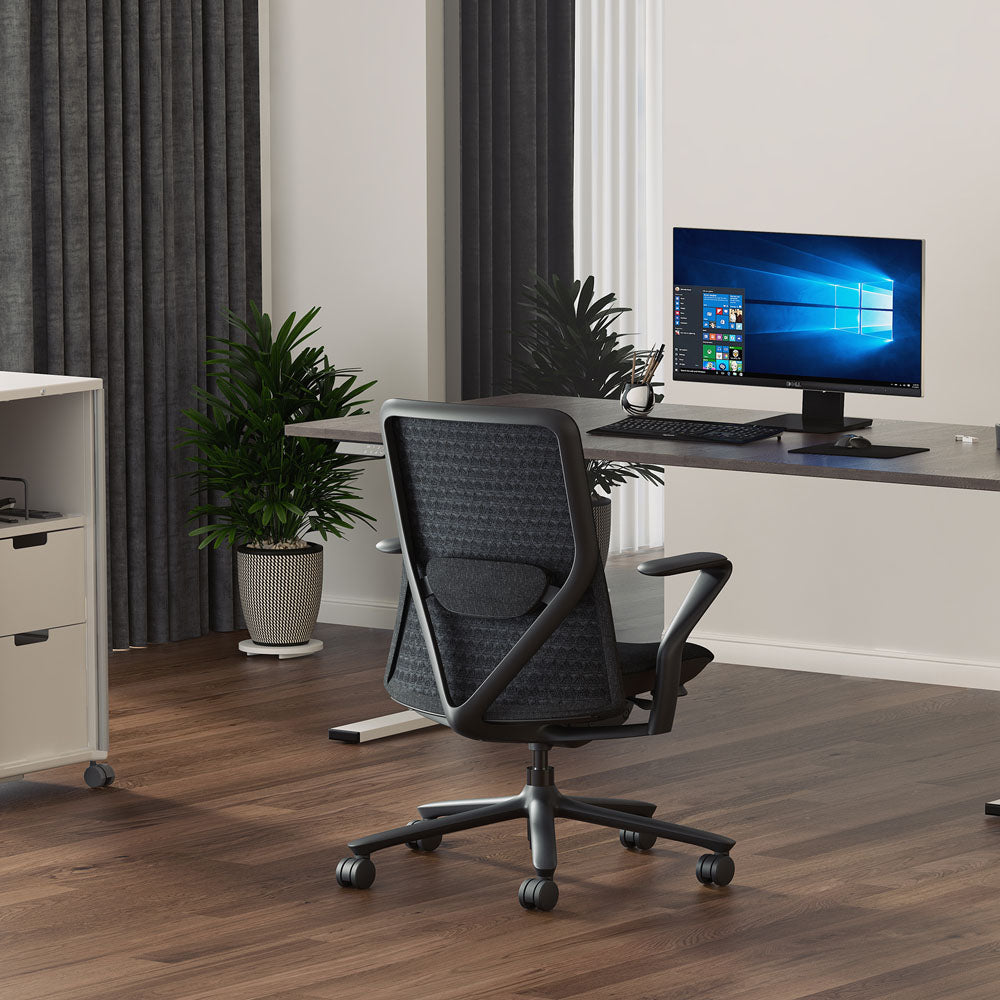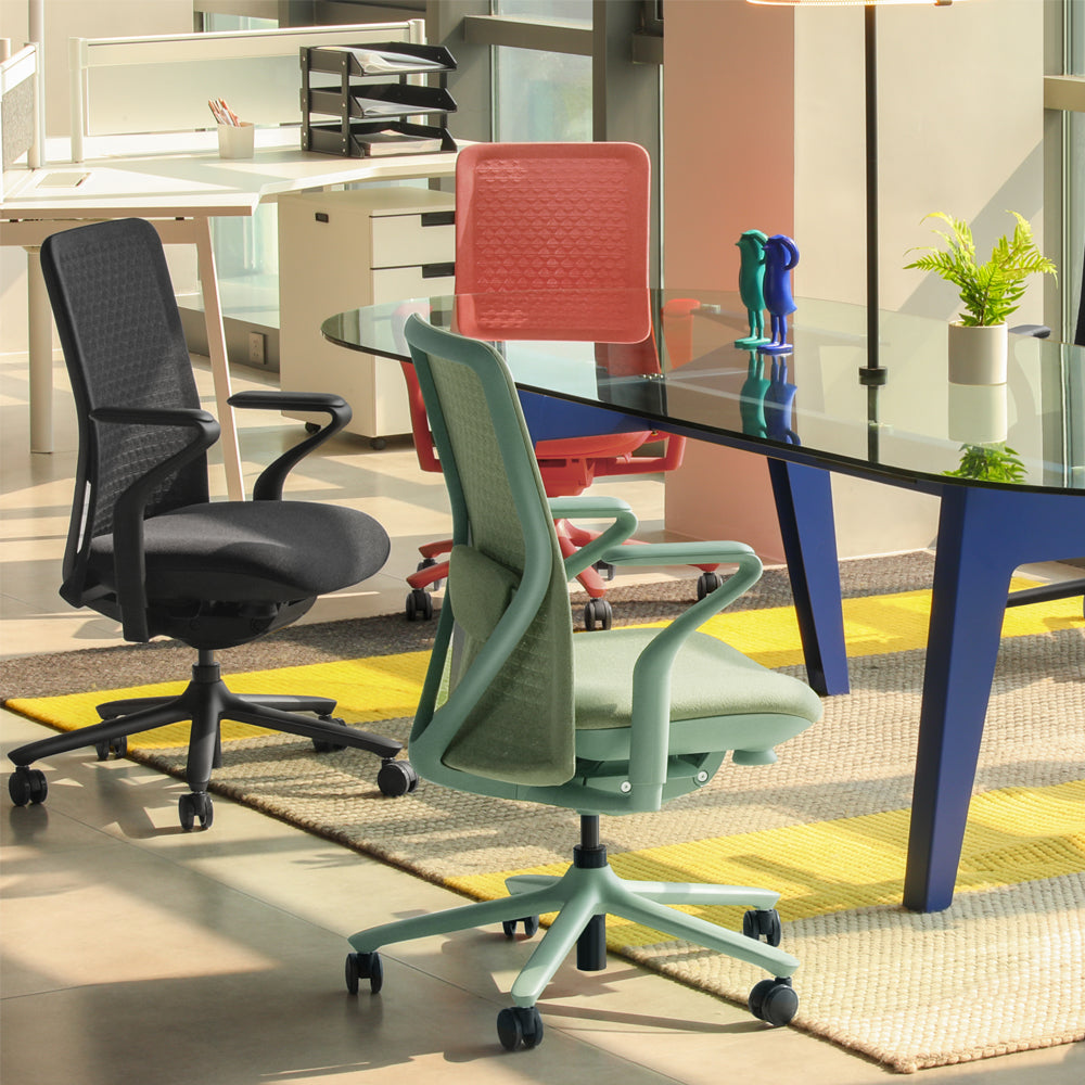 The fabric's unique weaving process blends an array of similar colours into each stitch, infusing a burst of life into the chair's colour palette. This creates a distinctive style that stands out, offering an array of creative possibilities to complement any workspace design. The result is a chair that not only feels good but also looks vibrant and inviting.