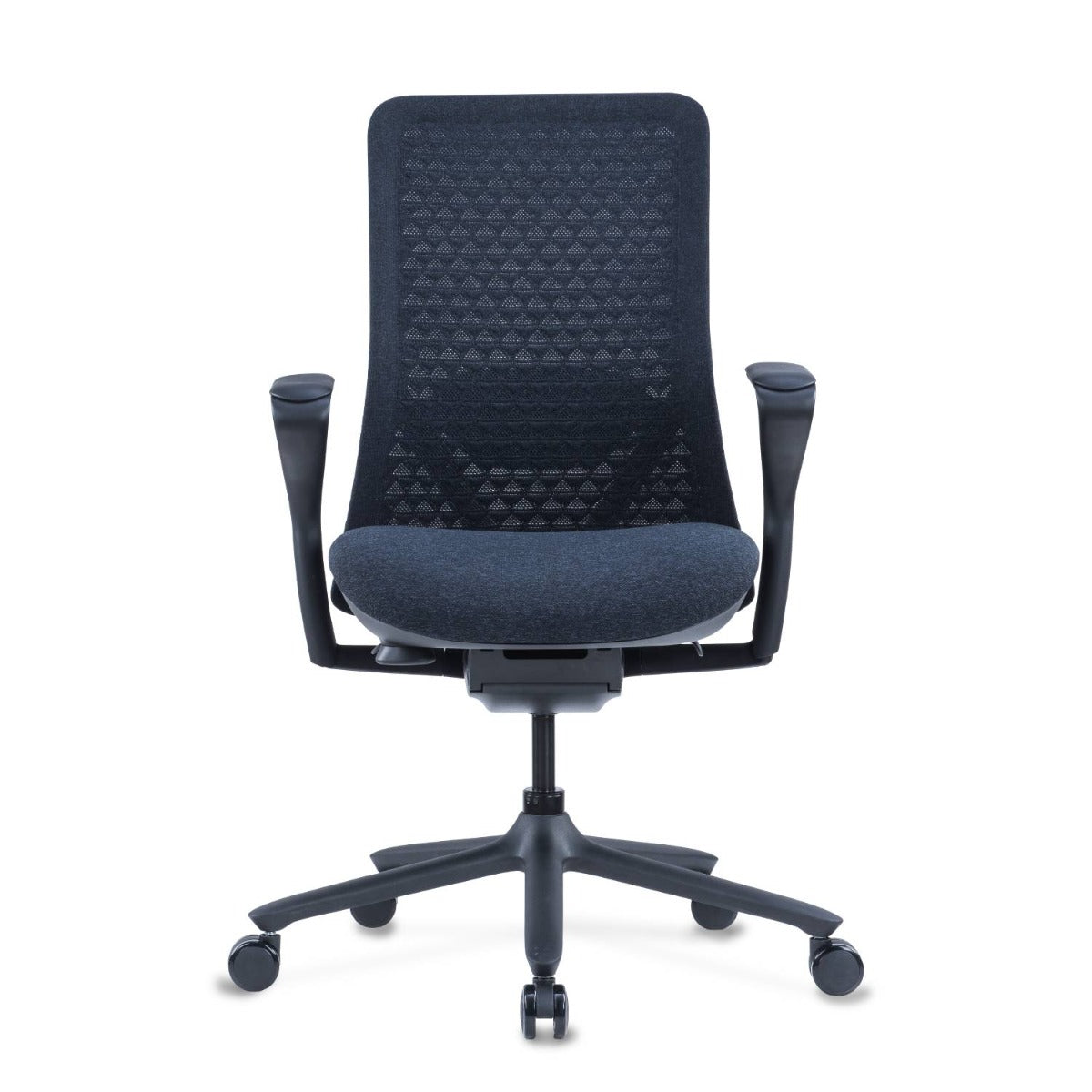 Our Cleo Task Office Chair is upholstered with a cutting-edge 3D knitted fabric. This fabric seamlessly covers the entire back of the chair, offering tailored elastic support that conforms to the body's contours. The intricate triangular pattern not only adds an aesthetic flair but also ensures superior breathability, keeping you comfortable throughout your workday.