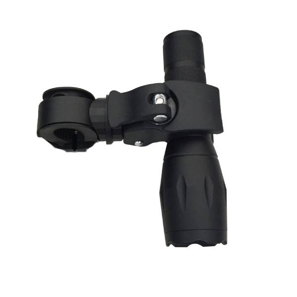 Flashlight and holder for electric wheelchairs and mobility scooters. Improves safety and visibility at night.