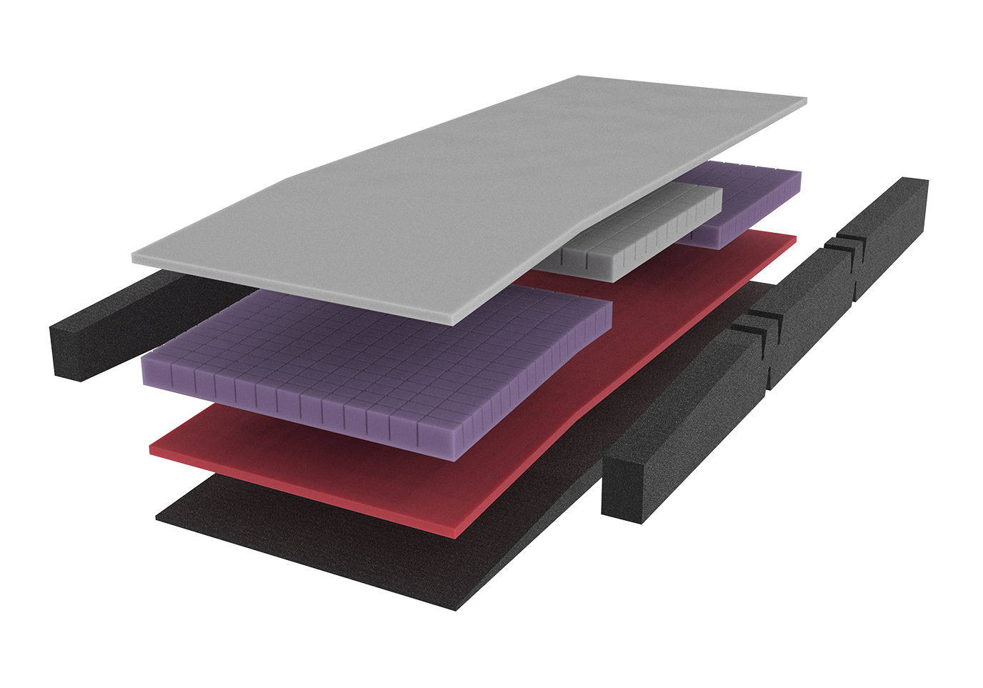 The engineered foam is often referred to as ‘castellated’ or ‘modulated’, whereby foam is cut into unique shapes – typically small cells in a grid-like pattern.