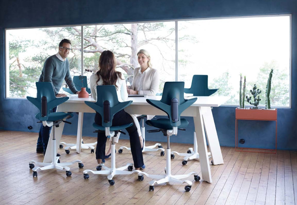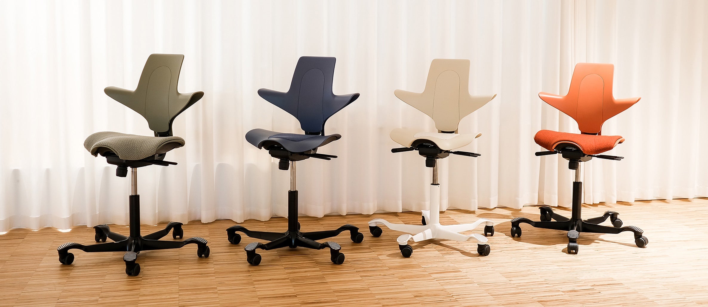 No other task chair is so well adapted to sitting at different heights. The flexible height ranges of the HÅG Capisco and the HÅG Capisco Puls make it easy to shift between sitting, standing and perching. Frequently varying your position this way provides a unique alternative to changing between sitting, standing and perching positions. By moving more you will feel energised and therefore more focused on the task at hand. This is also the perfect way to reduce fatigue that is often associated with standing desks.