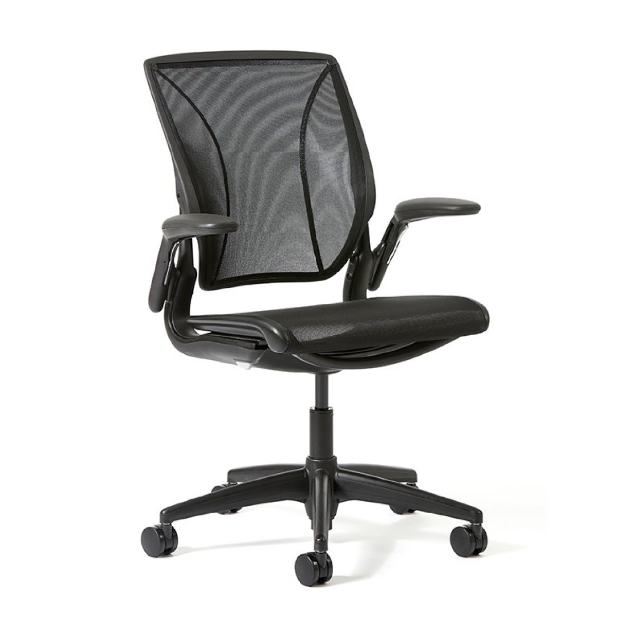 Like all Humanscale chairs, World One’s design eliminates the need for traditional mechanisms by using the laws of physics and the sitter’s body weight to offer a perfect recline. World One features armrests that are attached to the back of the chair and move with the user, providing custom comfort throughout the workday. A high-value task chair with minimal parts, World One was built with longevity in mind to look as good in ten years as it does today.