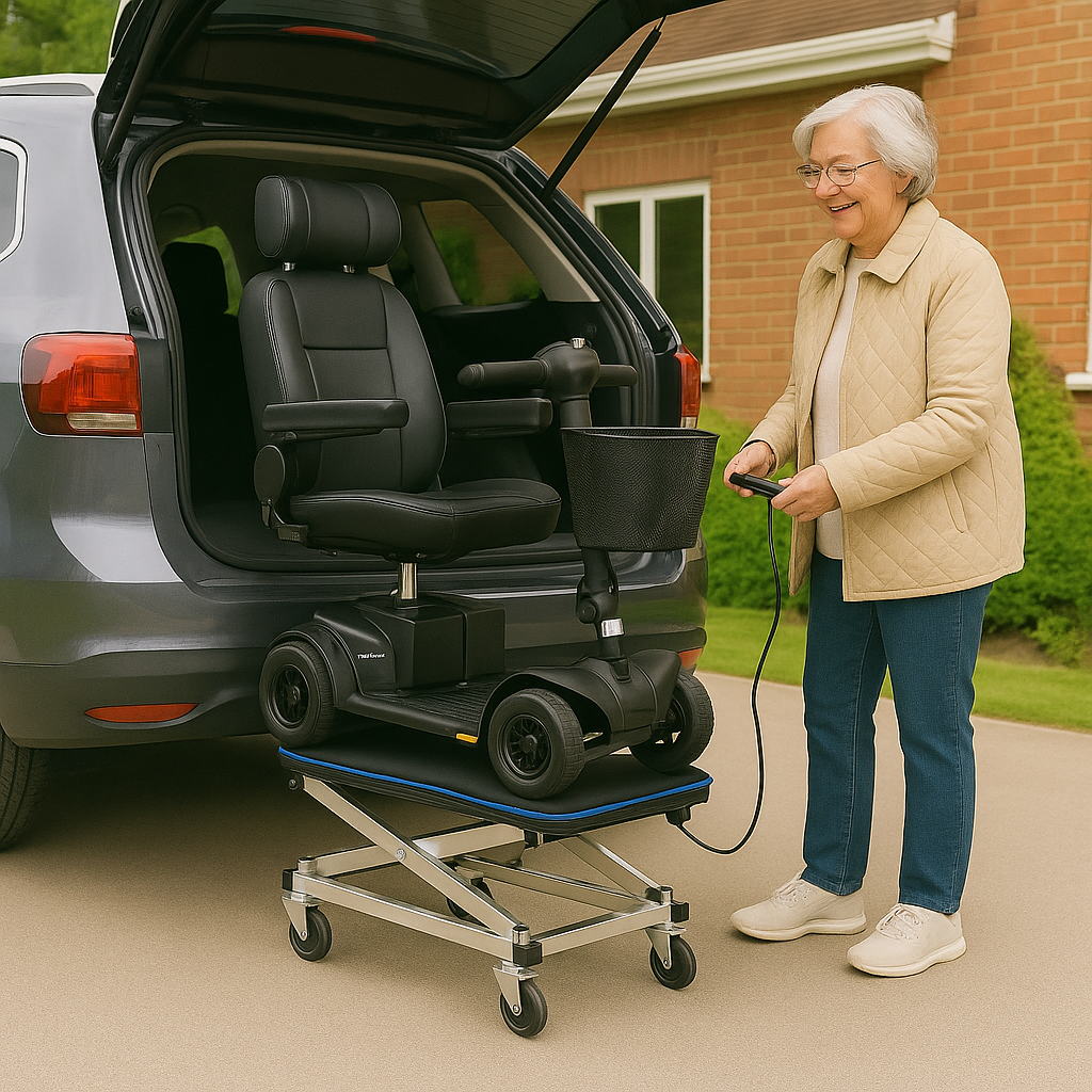The Orca BootLift is a smart, compact lifting platform designed to help you load your mobility scooter into the boot of your car - without strain or hassle. With a 50kg lifting capacity and a maximum lift height of 910mm, it's ideal for travel scooters and lightweight power chairs.