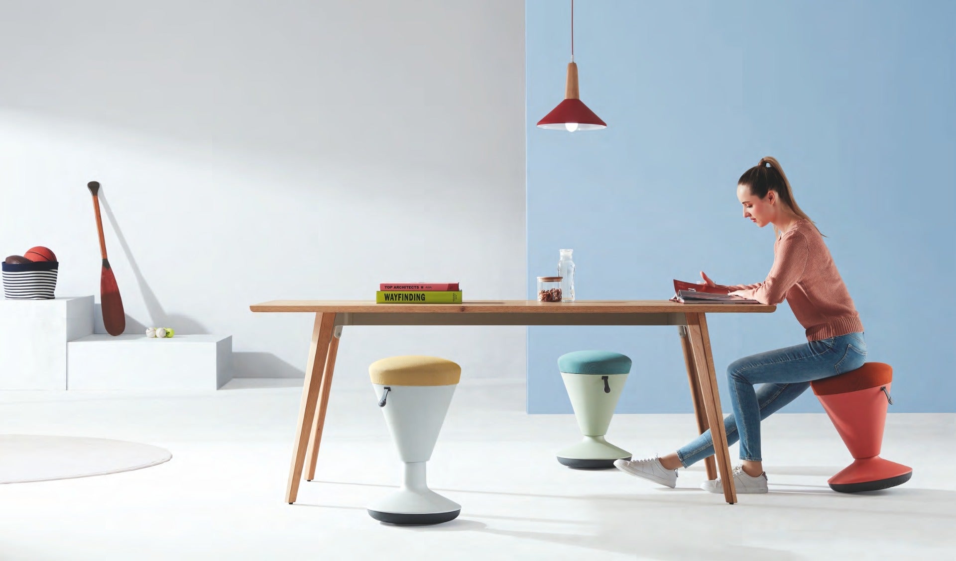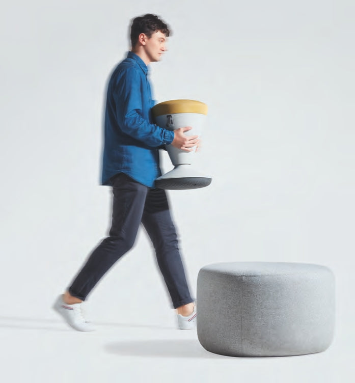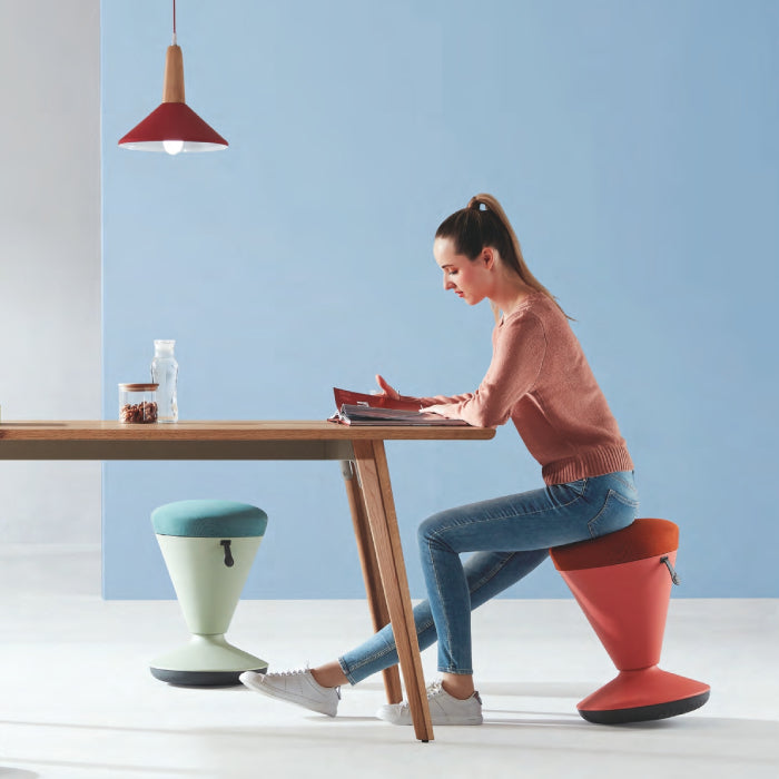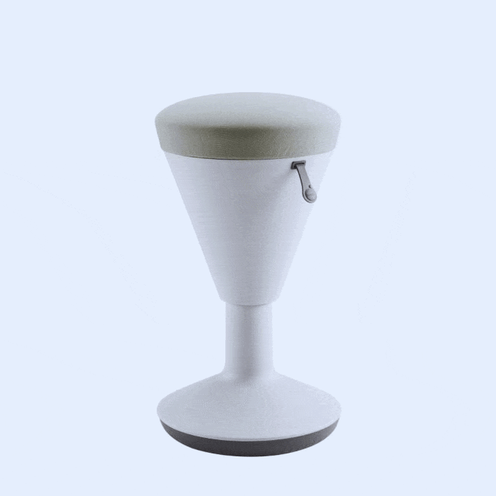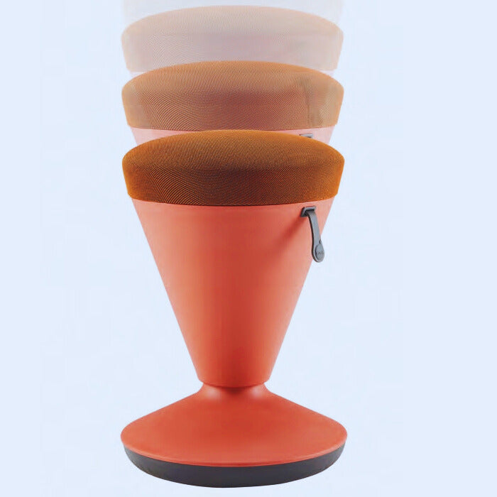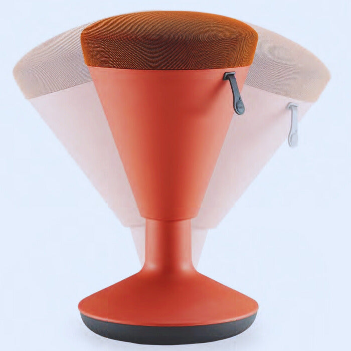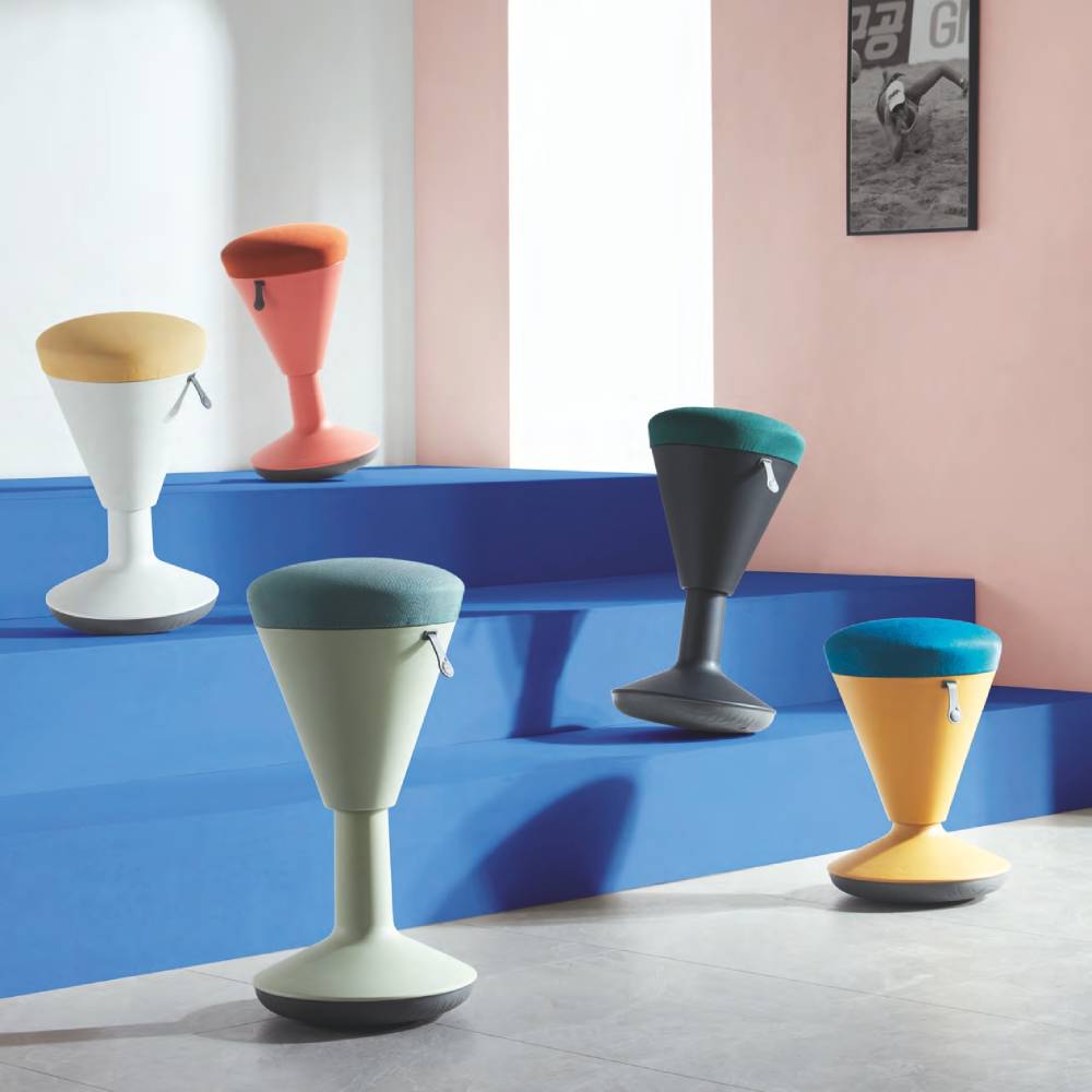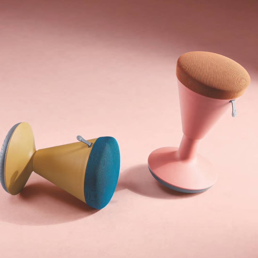 The Orka stool features a waisted design inspired by a cocktail glass, giving it a unique and playful appearance. Its weighted base allows it to rock back and forth like a toy tumbler, encouraging movement, creativity, and interaction in any setting.