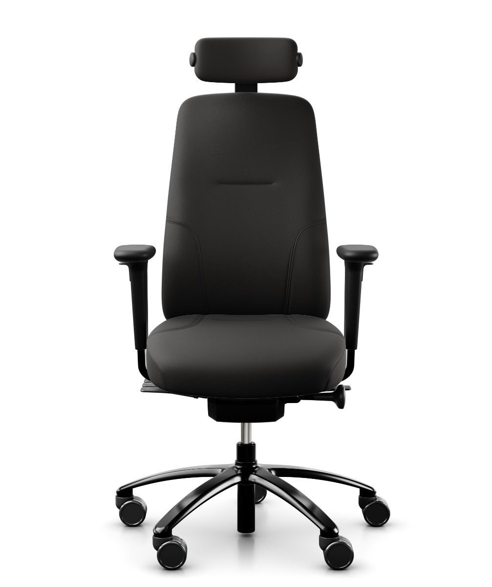 transport control centers, offshore installations, and trading rooms. Clear pictograms ensure easy adjustments, and RH Logic 220 offers universal adaptability with seamless adjustments, a high backrest, and dynamic comfort through our innovative tilt mechanism. Featuring a blackcoated metal frame and customizable accessories for the perfect t for you in your workspace.