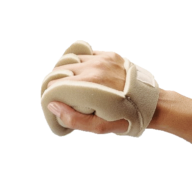 The Royal Palm Shield is a medical device used often to alleviate discomfort from tightly closed fists and hands. The shield helps increase comfort for users with moderate to severe hand tightness and is recommended for use by patients at risk for skin breakdowns and finger contractions. The shield can also be used to prevent patients from tugging or pulling on their feeding tubes. It conforms to the natural shape of the hand with a soft centre to help keep the wearer’s grip in place.