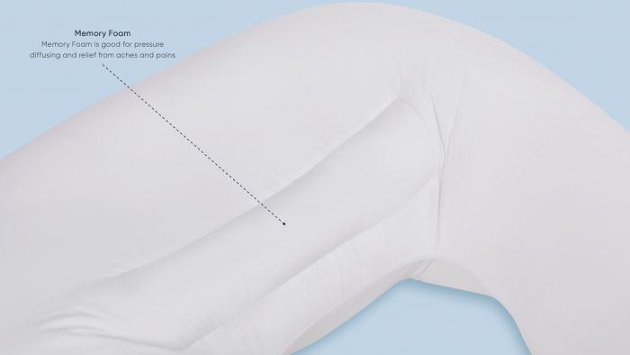 Cushioned arms fully support the shoulders and deter rolling onto the back during sleep, helping to sustain the side sleeping position – the preferred sleeping position for pregnancy and the position most likely to minimise snoring.