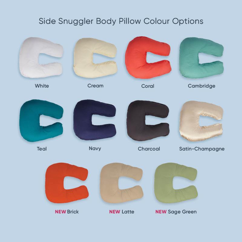 The Australian-made Side Snuggler support pillow is designed to encourage and sustain side sleeping. Cushioning ‘arms’ fully support the front and back of the body and deter the sleeper from rolling onto their back.