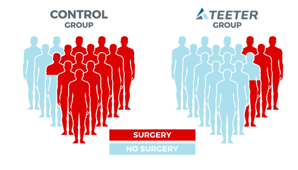 A published preliminary pilot study compared two groups of sciatic pain patients scheduled for lower back surgery. While all patients received physical therapy, only the group that incorporated a 2-minute Teeter regimen, 3 times per week, for 30 days reduced their need for surgery by 70.5%!Teeter is the only FDA-registered inversion table that relieves sciatic pain and other disc related back pain. Our Inversion Tables use “Progressive Decompression” which means each disc is decompressed by the same body weight that compresses it while upright. Relieve the pressure – relieve the pain.