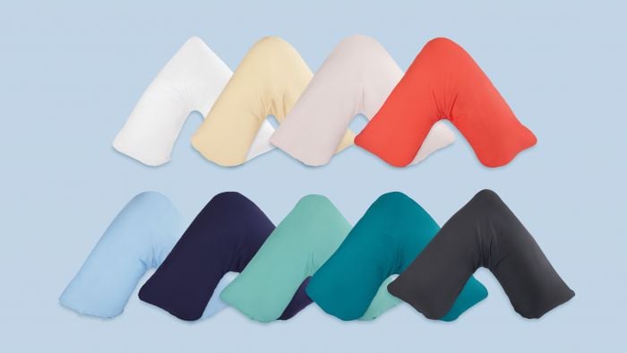 This v shaped pillow lets me "hug" it while providing support between my legs to align my body better. No more trying to shift and smush regular pillows trying to get comfortable.