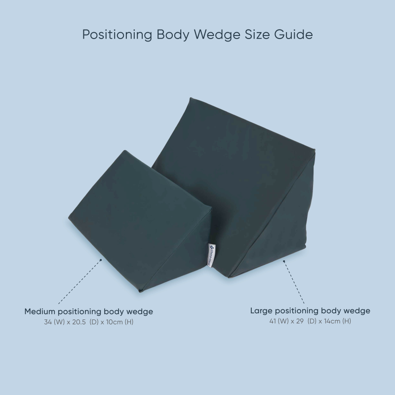 The TheraMed Positioning Body Wedge has foam inserts that can be easily removed to adjust the angle of the support between 15 – 25 degrees. The generous size of the Positioning Body Wedge means it can be used in a variety of ways to support, stabilise, reduce pressure, and comfort various parts of the body. This body wedge comes with a moisture and bacteria-resistant Steri-Plus cover - easy to wipe clean with a damp cloth and sanitiser.