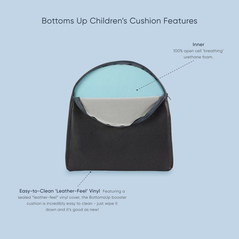 Give your kids the perfect seat height with the Bottoms Up booster seat cushion, designed especially for children to sit up and fully engage with their meals or homework. Adding a child's booster seat will: