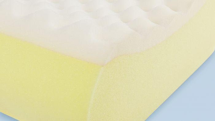 The top layer of slow recovery 'egg-foam' is designed to diffuse pressure on the neck while the base of heavy-density premium quality foam cushions and absorbs movement.
