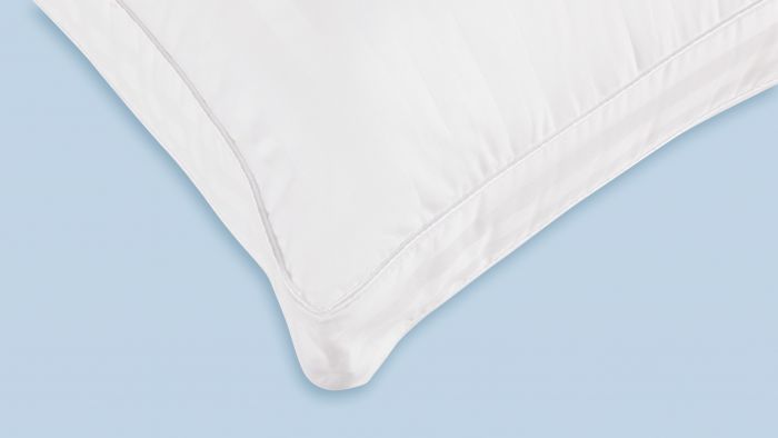 This allergy sensitive pillow is enveloped in a luxurious cotton sateen cover with a subtle 1cm stripe pattern and piping. This exquisite cover not only enhances the overall aesthetics but also contributes to the 'down-like' feel of the pillow.