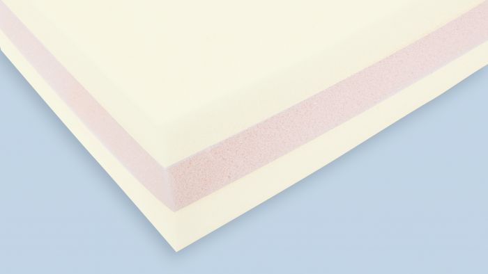 A 10cm thick foam cushion comprised of soft memory foam outer and dense traditional foam inner.