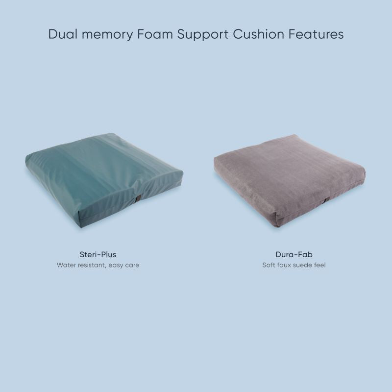 Experience lasting comfort and support with the TheraMed Dual Memory Support. Designed to alleviate back pain and improve posture, its dual-layer memory foam construction ensures optimal comfort and pressure relief. Use it as a back support in any chair or as a versatile cushion for added comfort. Choose from Dura-Fab or Steri-Plus covers for hygiene and comfort.