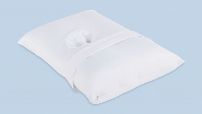 Our CNH pillow includes a specially fitted, easily removable custom cotton pillowcase designed to ensure no painful rubbing results if contact with your ear occurs while you sleep.