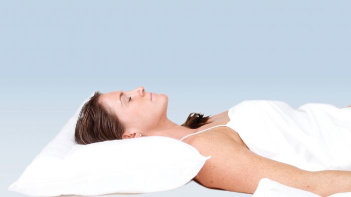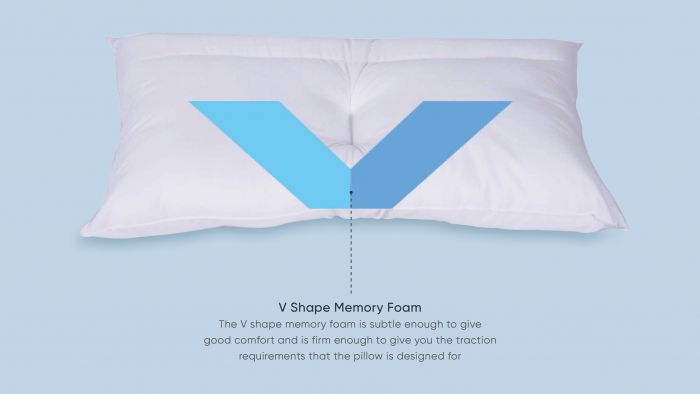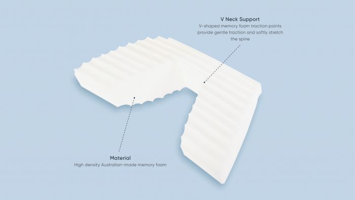 V-shaped memory foam inserts gently help to lift the head away from the shoulders providing a gentle stretch. Perfect for back and side sleepers, though it can take a night or two to get used to the unique shape of the pillow.